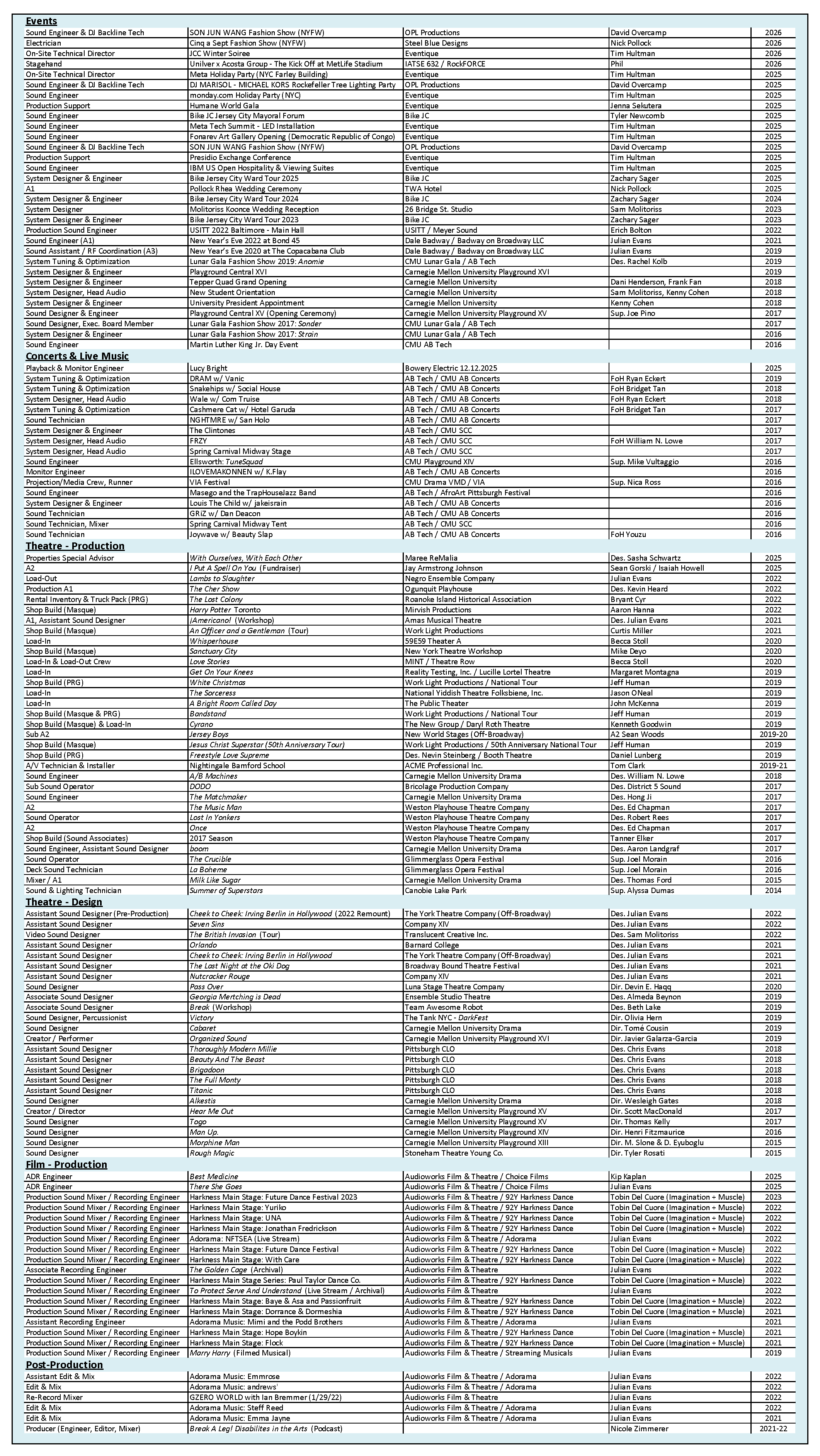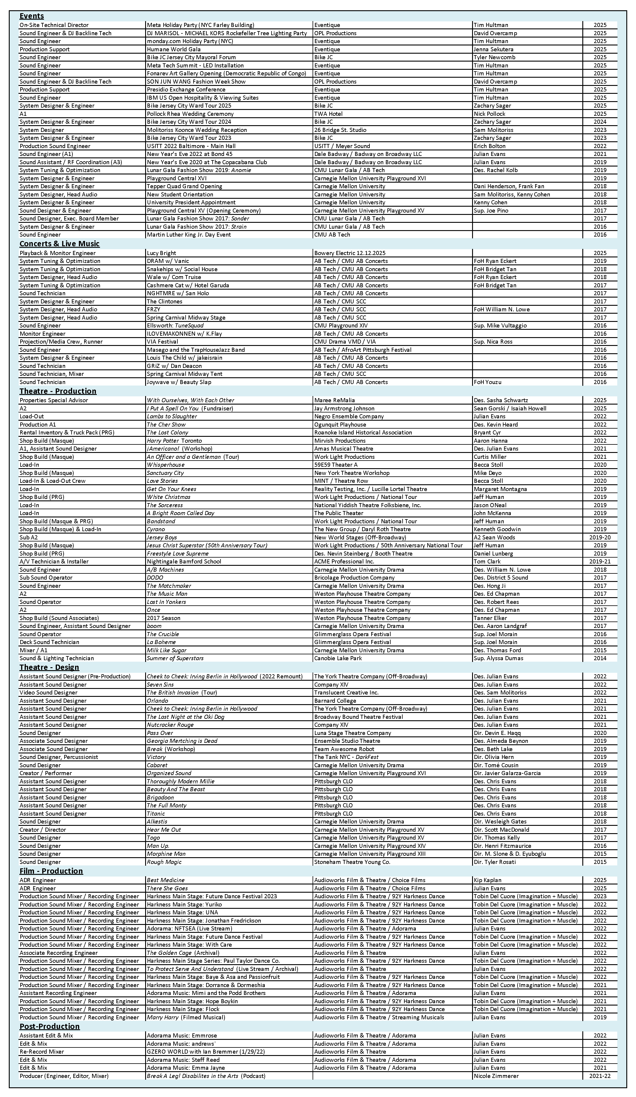 For a print resume or references, please contact me.